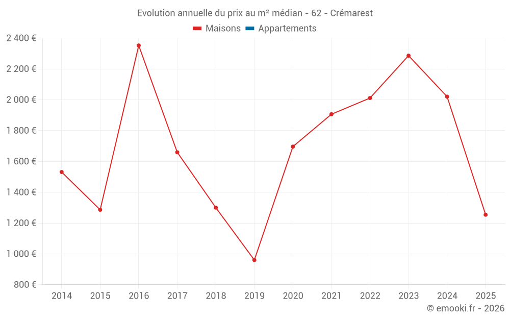 Le prix au m² des maisons a diminué de 38% depuis 1 an, mais il a augmenté de 31% en 6 ans.