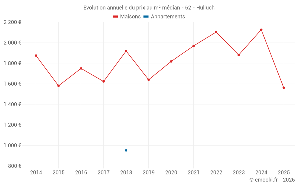 Le prix médian sur les 32 transactions de maisons des 12 derniers mois dans la commune d'Hulluch était de 1 735 € par mètre carré pour une valeur foncière médiane de 171 000 €. Sur cette période 60% des transactions se sont situées entre 1 431 et 2 392 € par mètre carré (du 2ème au 8ème déciles).