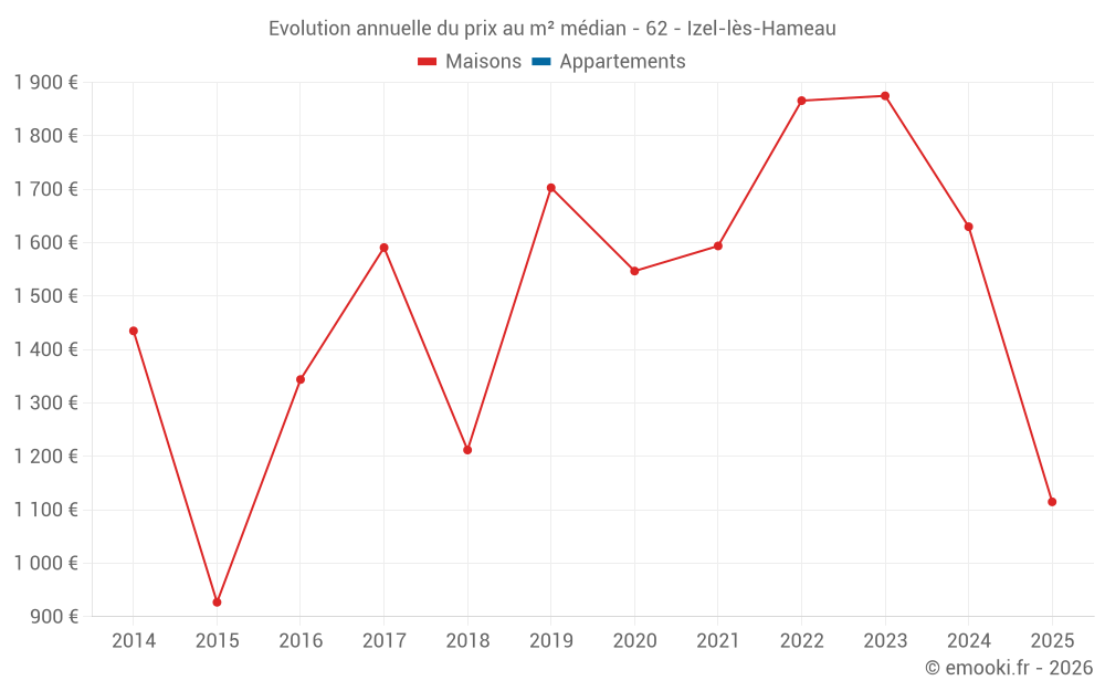 Le prix au m² des maisons a diminué de 41% depuis 2 ans, mais il a augmenté de 20% en 10 ans.