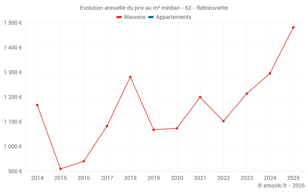 Evolution du prix au m² médian des maisons