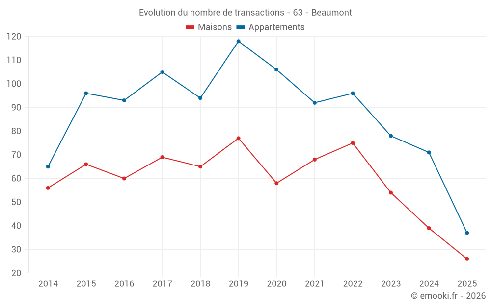 Carte des prix de l'immobilier dans la commune de Beaumont, choississez une section pour voir les transactions par parcelle.