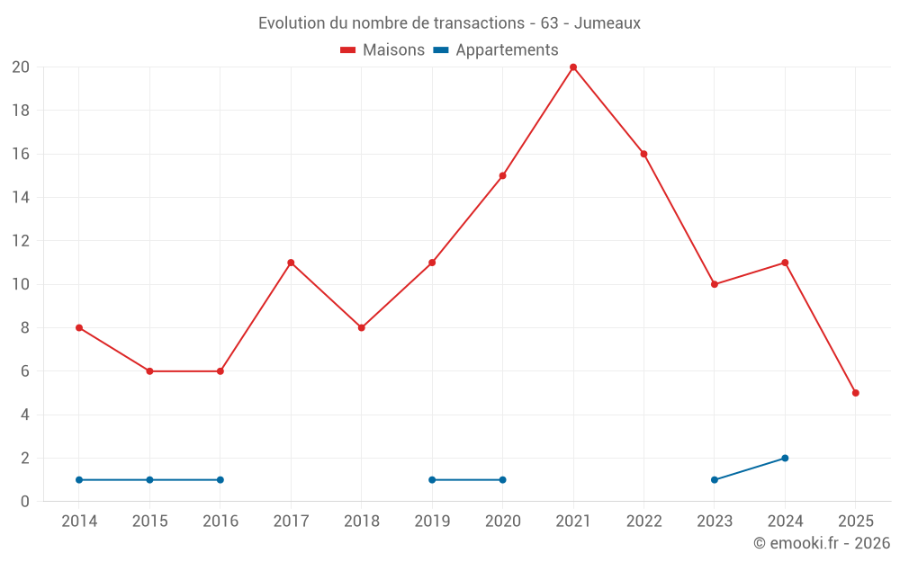 Carte des prix de l'immobilier dans la commune de Jumeaux, choississez une section pour voir les transactions par parcelle.