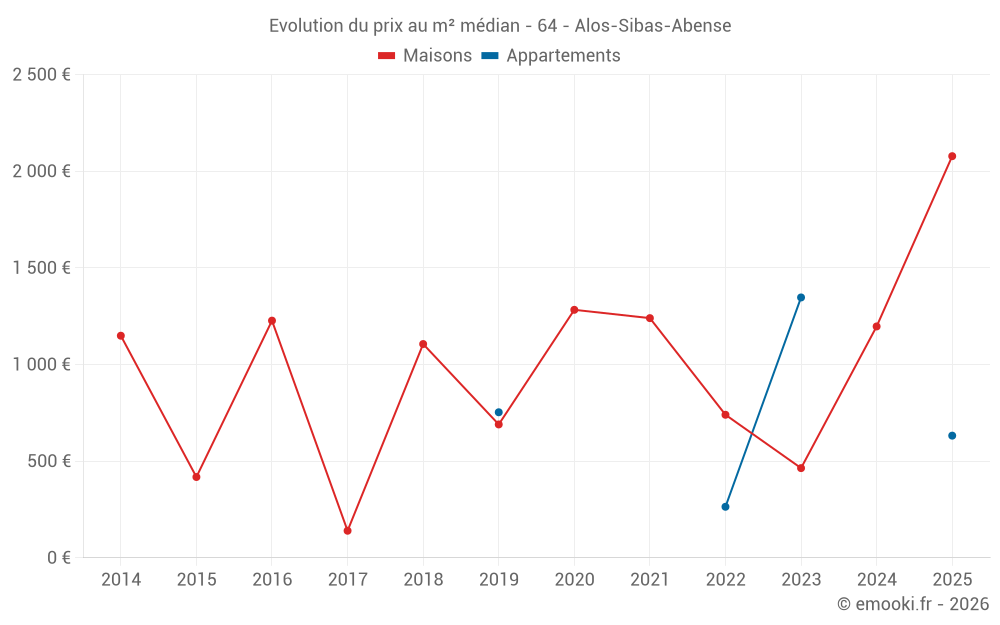 Carte des prix de l'immobilier dans la commune d'Alos-Sibas-Abense, choississez une section pour voir les transactions par parcelle.