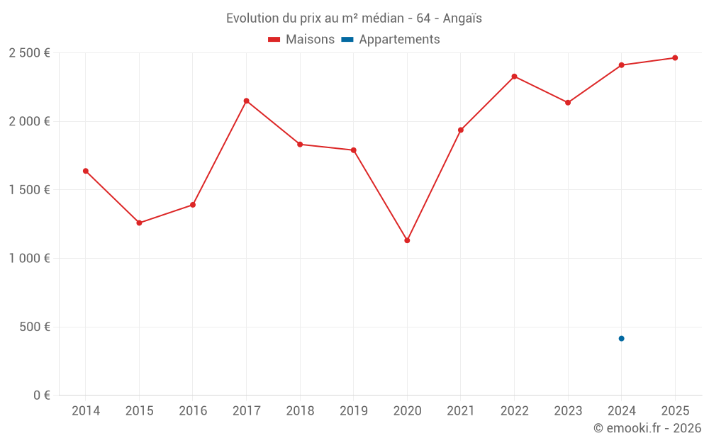Carte des prix de l'immobilier dans la commune d'Angaïs, choississez une section pour voir les transactions par parcelle.