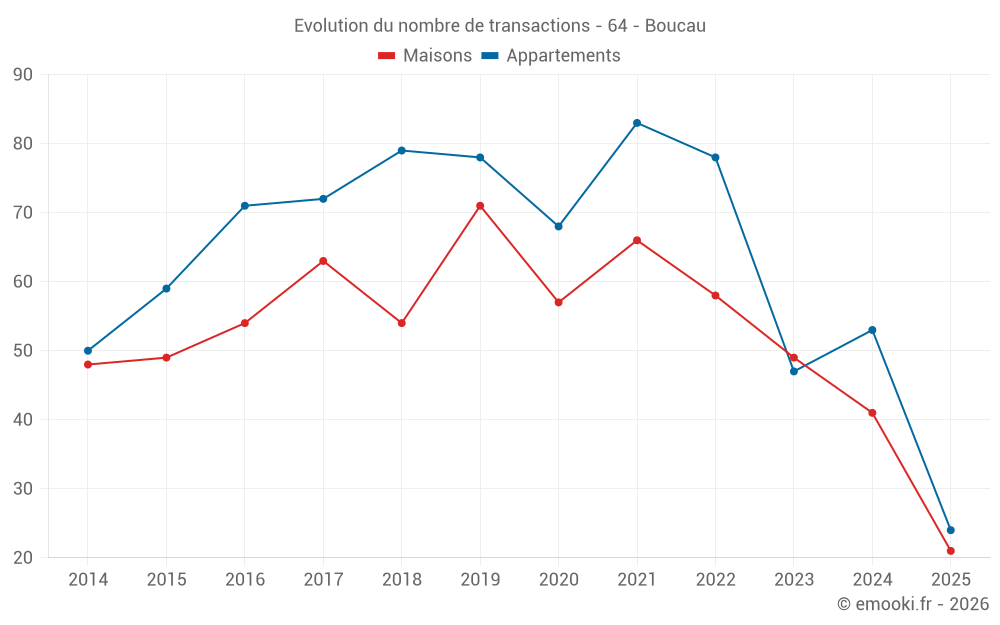 Attention, dernière année incomplète. Projections effectuées sur la base des proportions entre semestres de l'année précédente au niveau départemental/national et par catégorie de bien.