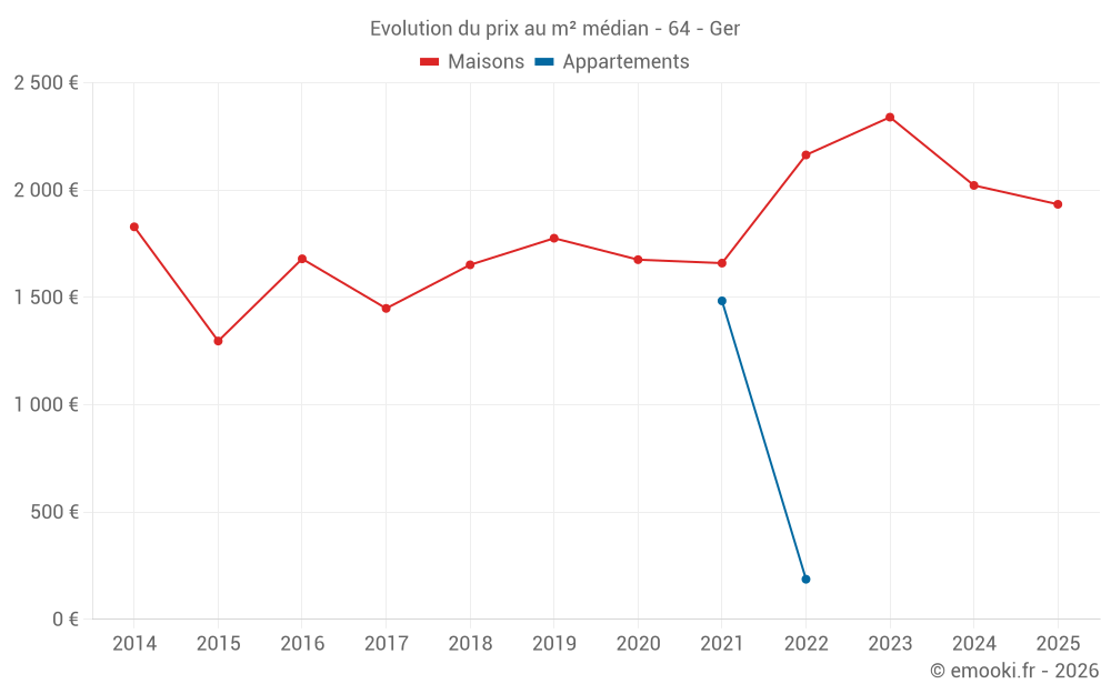 Attention, dernière année incomplète. Projections effectuées sur la base des proportions entre semestres de l'année précédente au niveau départemental/national et par catégorie de bien.