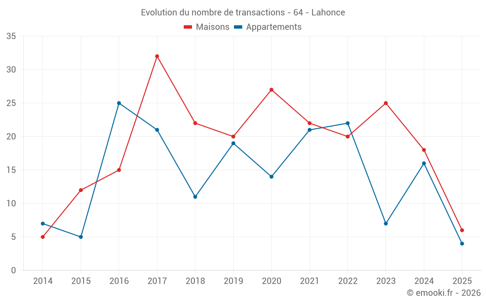 Carte des prix de l'immobilier dans la commune de Lahonce, choississez une section pour voir les transactions par parcelle.