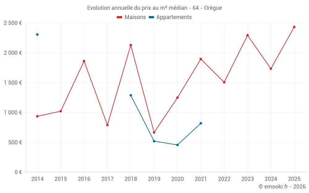 Carte des prix de l'immobilier dans la commune d'Orègue, choississez une section pour voir les transactions par parcelle.