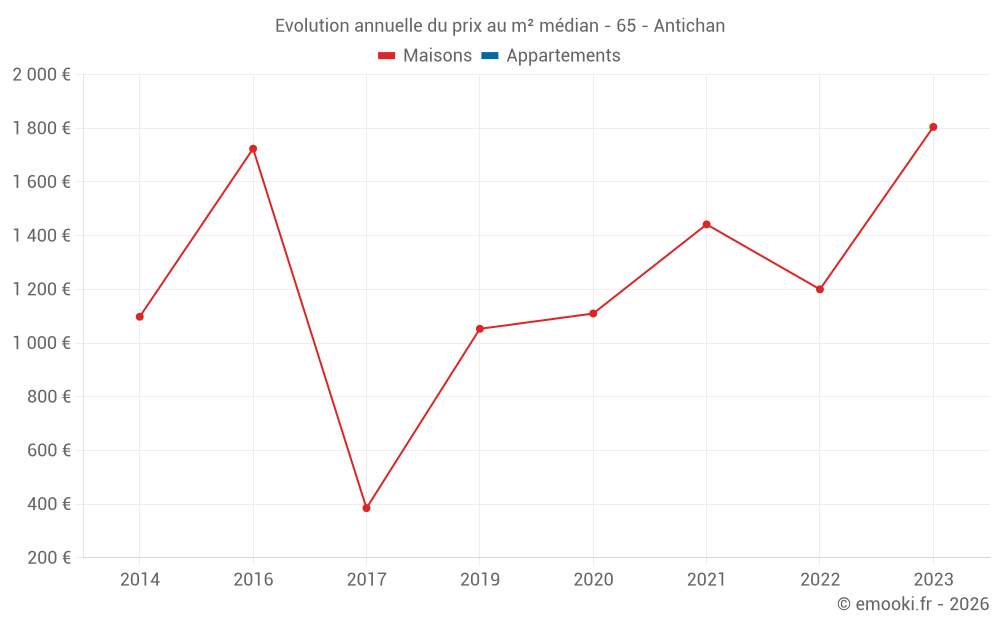 Carte des prix de l'immobilier dans la commune d'Antichan, choississez une section pour voir les transactions par parcelle.