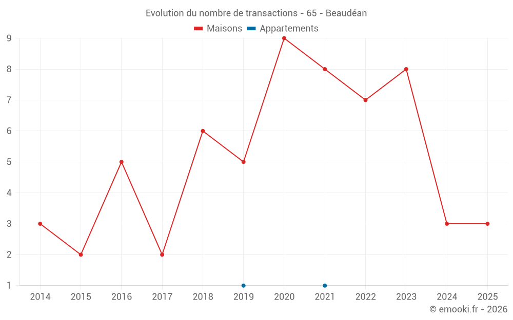 Carte des prix de l'immobilier dans la commune de Beaudéan, choississez une section pour voir les transactions par parcelle.
