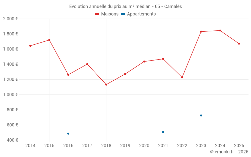 Attention, dernière année incomplète. Projections effectuées sur la base des proportions entre semestres de l'année précédente au niveau départemental/national et par catégorie de bien.