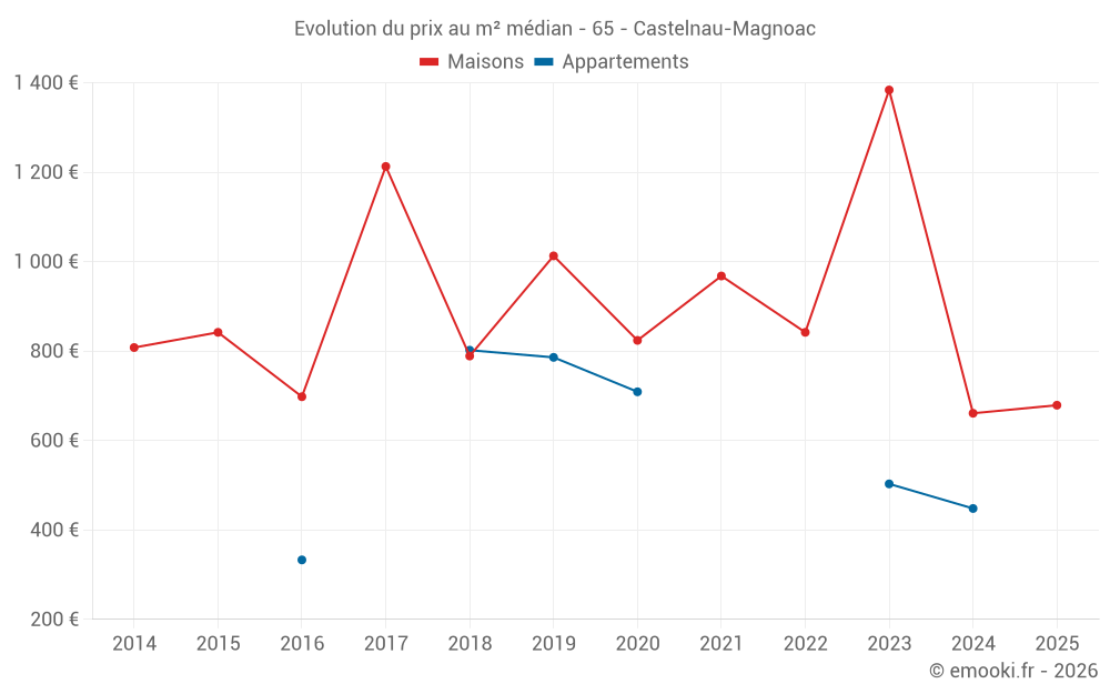 Carte des prix de l'immobilier dans la commune de Castelnau-Magnoac, choississez une section pour voir les transactions par parcelle.