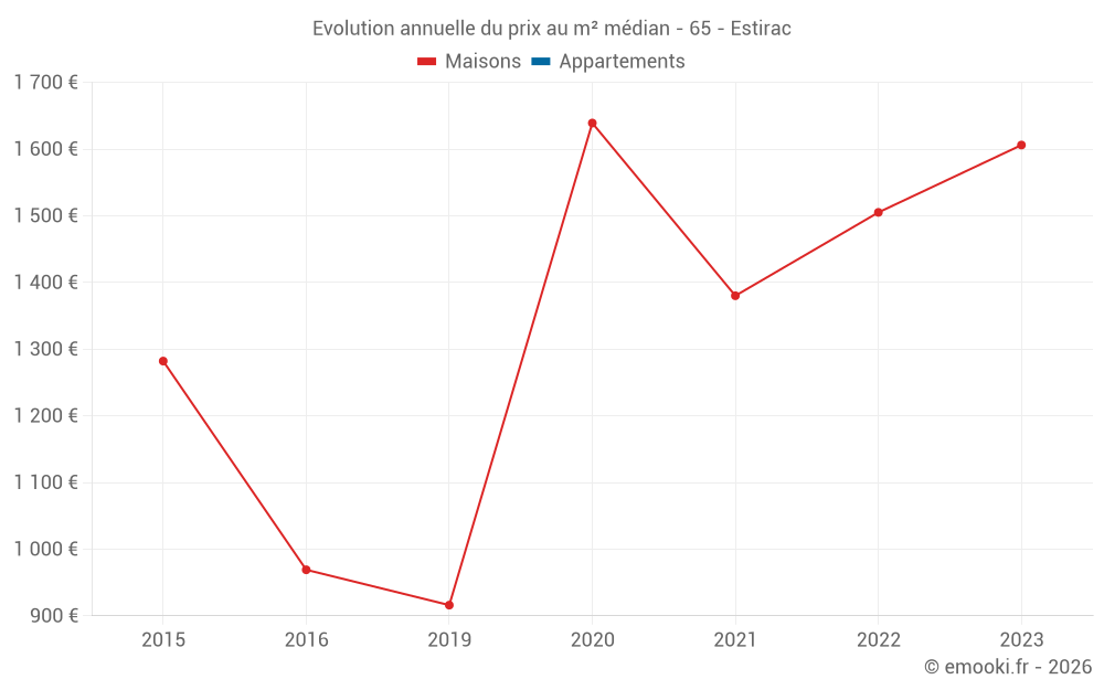 Evolution du prix au m² médian des maisons