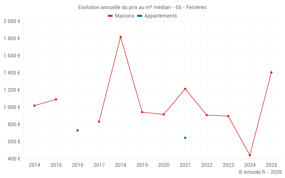 Evolution du prix au m² médian des maisons