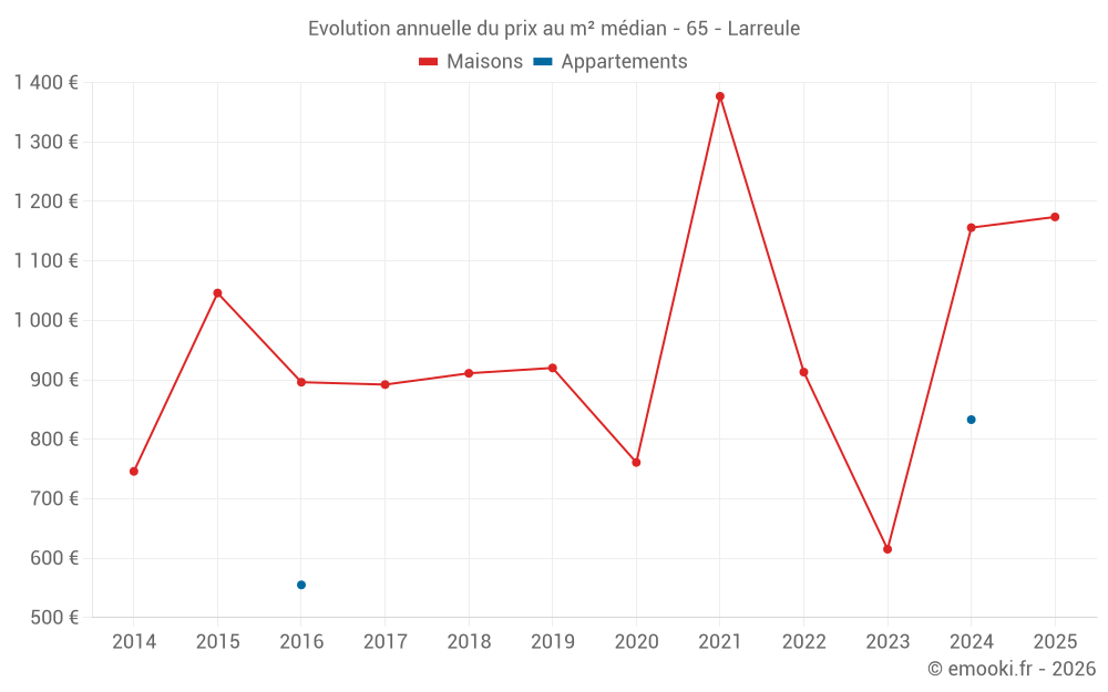 Prix médian sur les 2 transactions des 120 derniers mois.