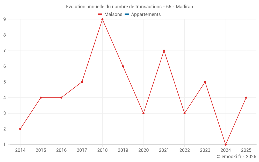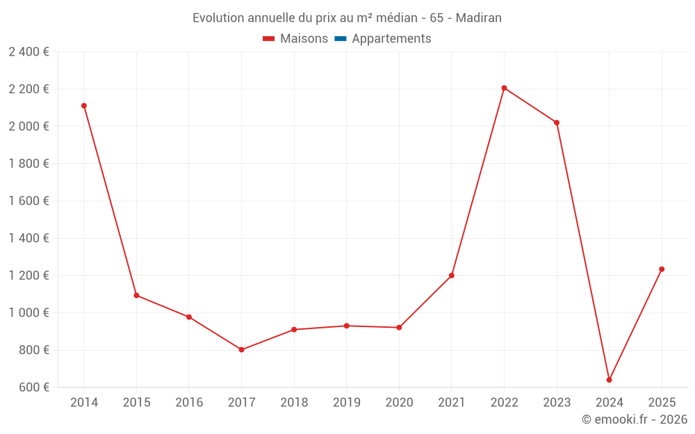 Le prix au m² des maisons a diminué de 39% depuis 2 ans, mais il a augmenté de 54% en 8 ans.