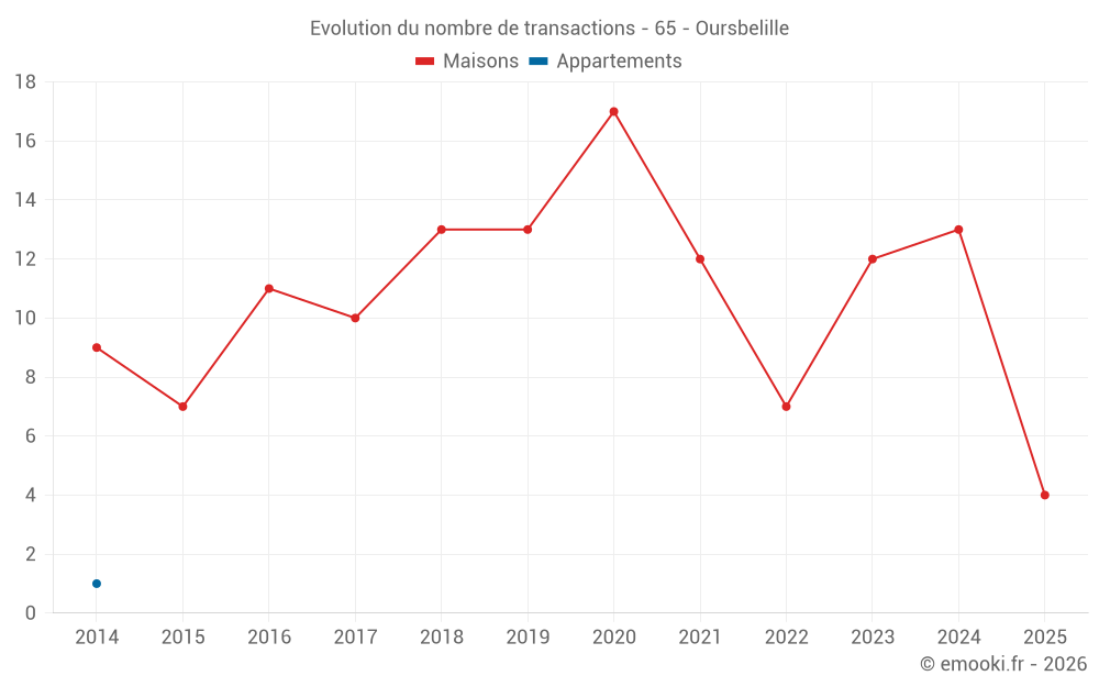 Carte des prix de l'immobilier dans la commune d'Oursbelille, choississez une section pour voir les transactions par parcelle.