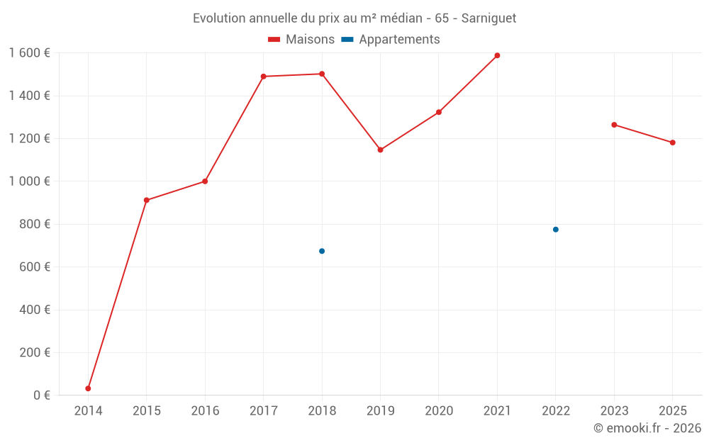 Carte des prix de l'immobilier dans la commune de Sarniguet, choississez une section pour voir les transactions par parcelle.