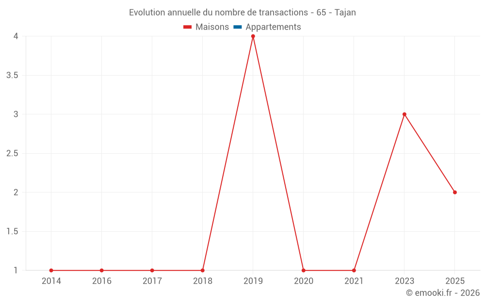 Carte des prix de l'immobilier dans la commune de Tajan, choississez une section pour voir les transactions par parcelle.