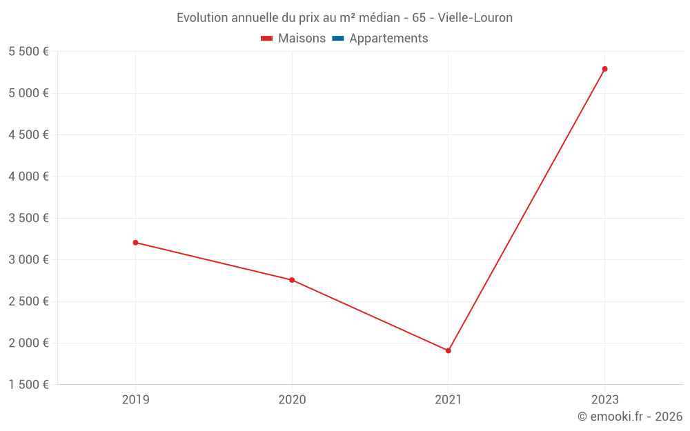 Attention, dernière année incomplète. Projections effectuées sur la base des proportions entre semestres de l'année précédente au niveau départemental/national et par catégorie de bien.