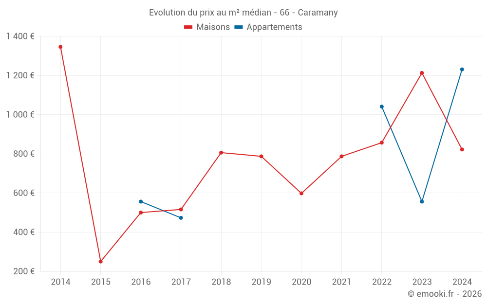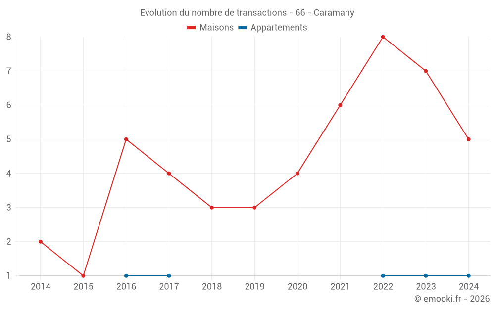 Carte des prix de l'immobilier dans la commune de Caramany, choississez une section pour voir les transactions par parcelle.