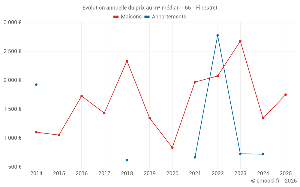 Carte des prix de l'immobilier dans la commune de Finestret, choississez une section pour voir les transactions par parcelle.