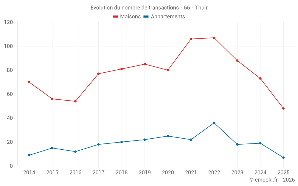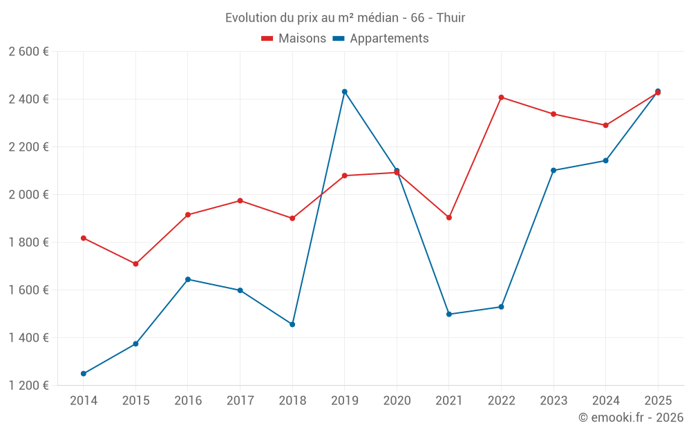 Carte des prix de l'immobilier dans la commune de Thuir, choississez une section pour voir les transactions par parcelle.