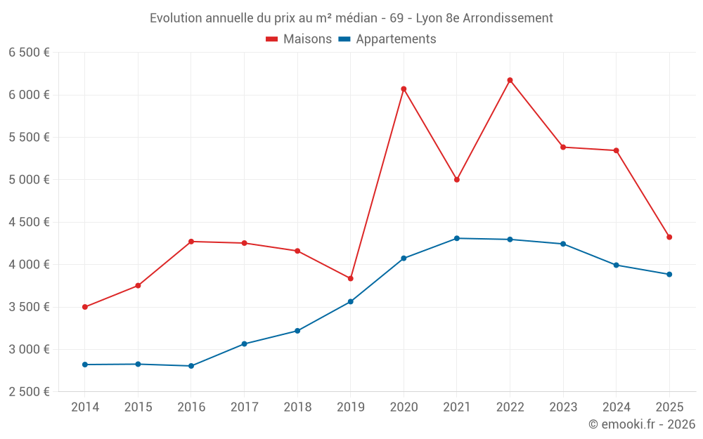 Quel est le prix au m2 des maisons à Lyon 8e Arrondissement ?