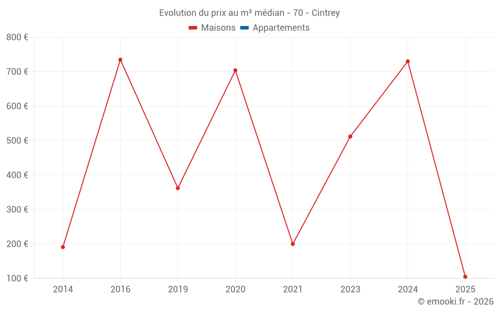 Attention, dernière année incomplète. Projections effectuées sur la base des proportions entre semestres de l'année précédente au niveau départemental/national et par catégorie de bien.