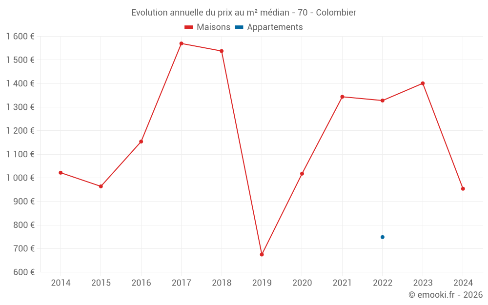 Evolution du prix au m² médian des maisons