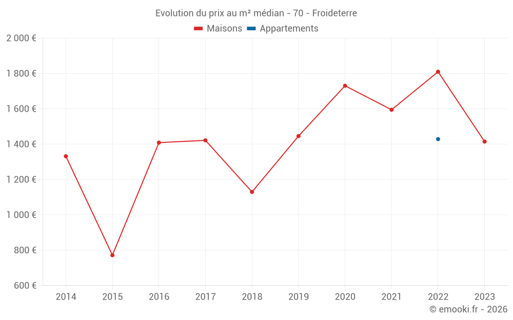 Carte des prix de l'immobilier dans la commune de Froideterre, choississez une section pour voir les transactions par parcelle.