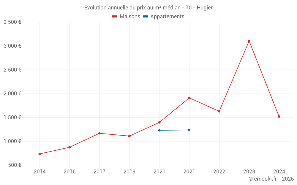 Attention, dernière année incomplète. Projections effectuées sur la base des proportions entre semestres de l'année précédente au niveau départemental/national et par catégorie de bien.