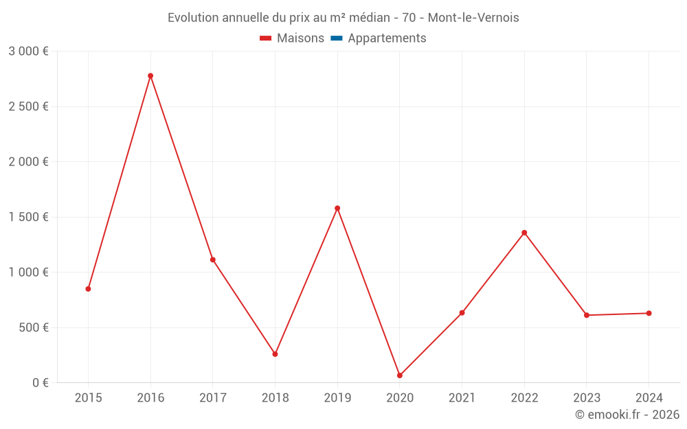 Attention, dernière année incomplète. Projections effectuées sur la base des proportions entre semestres de l'année précédente au niveau départemental/national et par catégorie de bien.