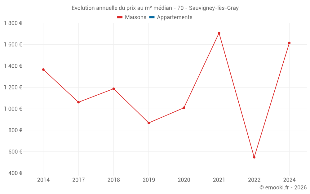 Attention, dernière année incomplète. Projections effectuées sur la base des proportions entre semestres de l'année précédente au niveau départemental/national et par catégorie de bien.