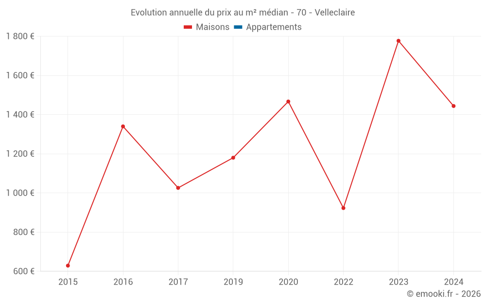 Attention, dernière année incomplète. Projections effectuées sur la base des proportions entre semestres de l'année précédente au niveau départemental/national et par catégorie de bien.