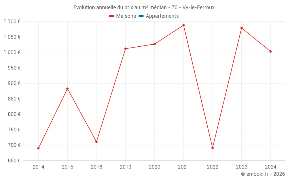 Attention, dernière année incomplète. Projections effectuées sur la base des proportions entre semestres de l'année précédente au niveau départemental/national et par catégorie de bien.