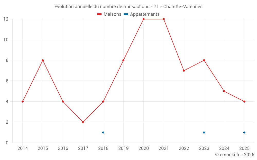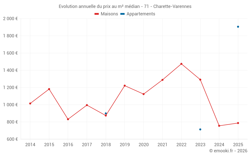 Le prix au m² des maisons a augmenté de 4.2% depuis 1 an, mais il a diminué de 47% en 3 ans.