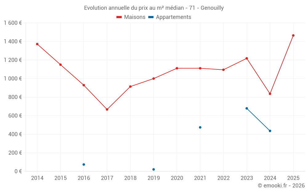 Carte des prix de l'immobilier dans la commune de Genouilly, choississez une section pour voir les transactions par parcelle.