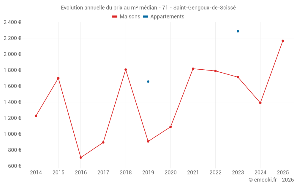Prix médian sur les 2 transactions des 120 derniers mois.