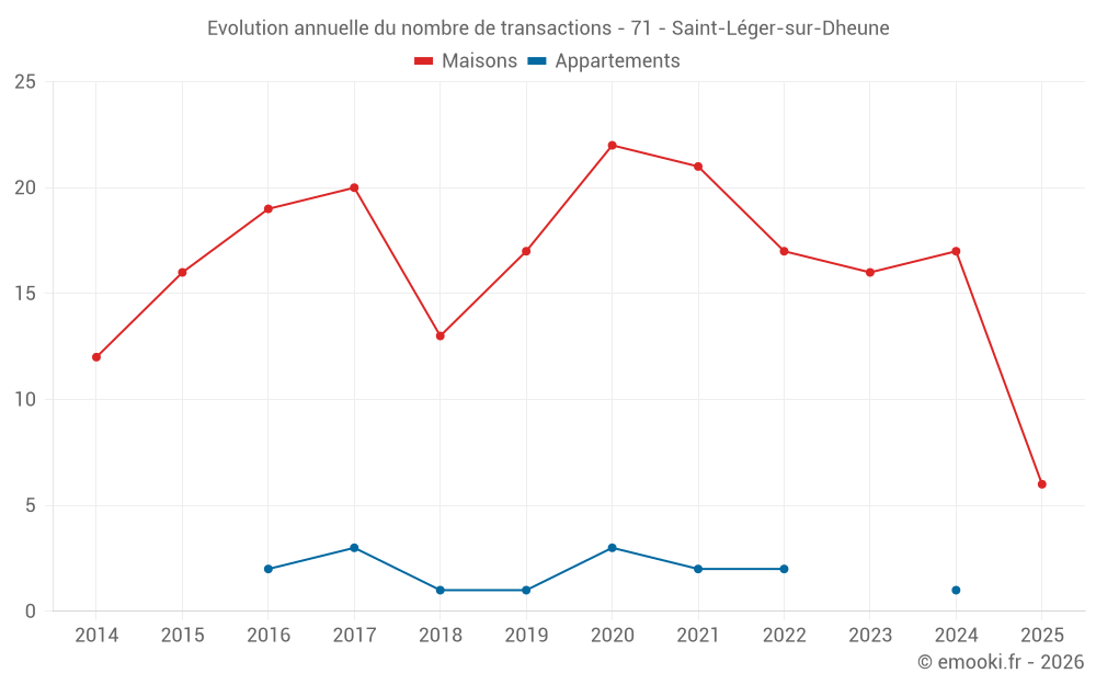 Le prix médian sur les 32 transactions de maisons des 24 derniers mois dans la commune de Saint-Léger-sur-Dheune était de 1 582 € par mètre carré pour une valeur foncière médiane de 171 310 €. Sur cette période 60% des transactions se sont situées entre 993 et 1 917 € par mètre carré (du 2ème au 8ème déciles).