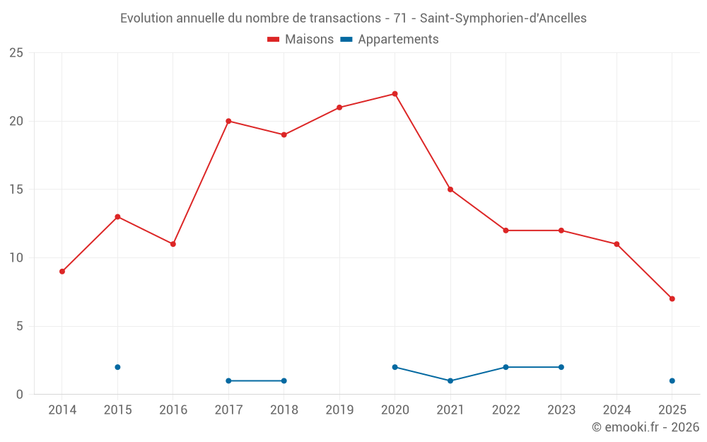 Le prix médian sur les 18 transactions de maisons des 24 derniers mois dans la commune de Saint-Symphorien-d'Ancelles était de 1 852 € par mètre carré pour une valeur foncière médiane de 166 000 €. Sur cette période 60% des transactions se sont situées entre 1 028 et 2 555 € par mètre carré (du 2ème au 8ème déciles).