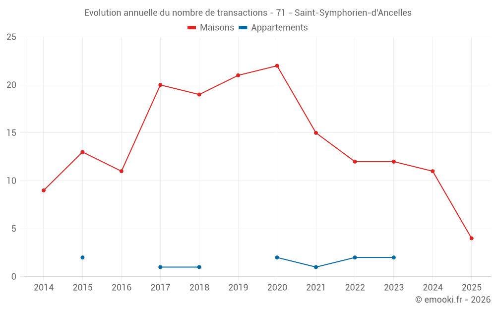 Le prix médian sur les 22 transactions de maisons des 24 derniers mois dans la commune de Saint-Symphorien-d'Ancelles était de 2 044 € par mètre carré pour une valeur foncière médiane de 204 000 €. Sur cette période 60% des transactions se sont situées entre 1 169 et 3 586 € par mètre carré (du 2ème au 8ème déciles).
