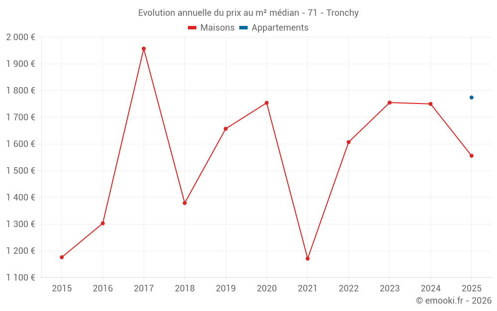 Carte des prix de l'immobilier dans la commune de Tronchy, choississez une section pour voir les transactions par parcelle.