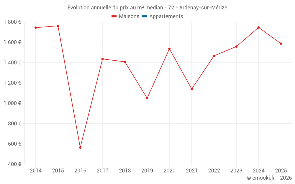 Carte des prix de l'immobilier dans la commune d'Ardenay-sur-Mérize, choississez une section pour voir les transactions par parcelle.