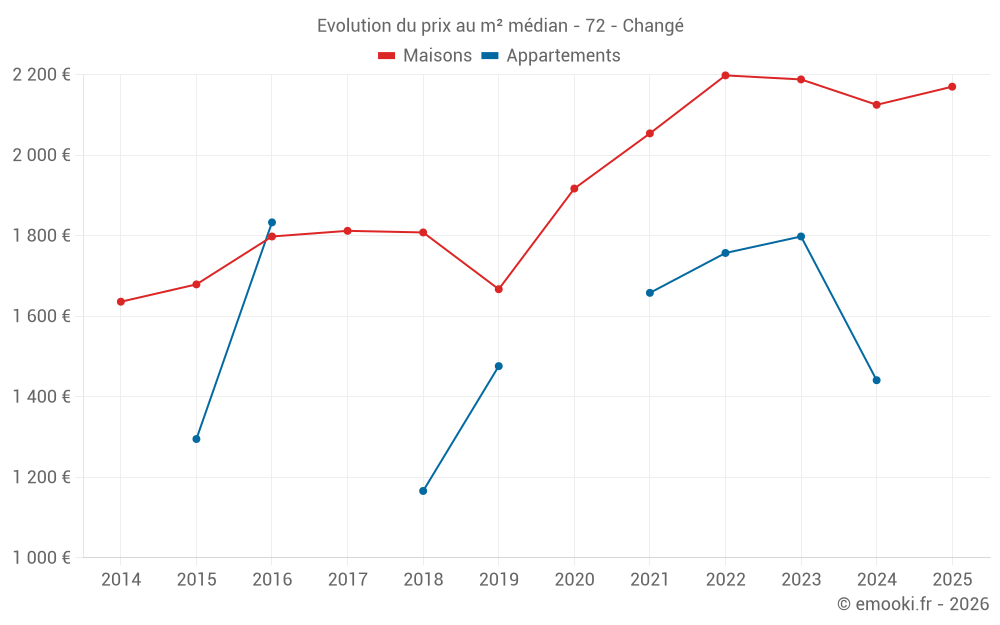Carte des prix de l'immobilier dans la commune de Changé, choississez une section pour voir les transactions par parcelle.