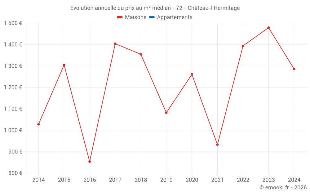 Evolution du prix au m² médian des maisons
