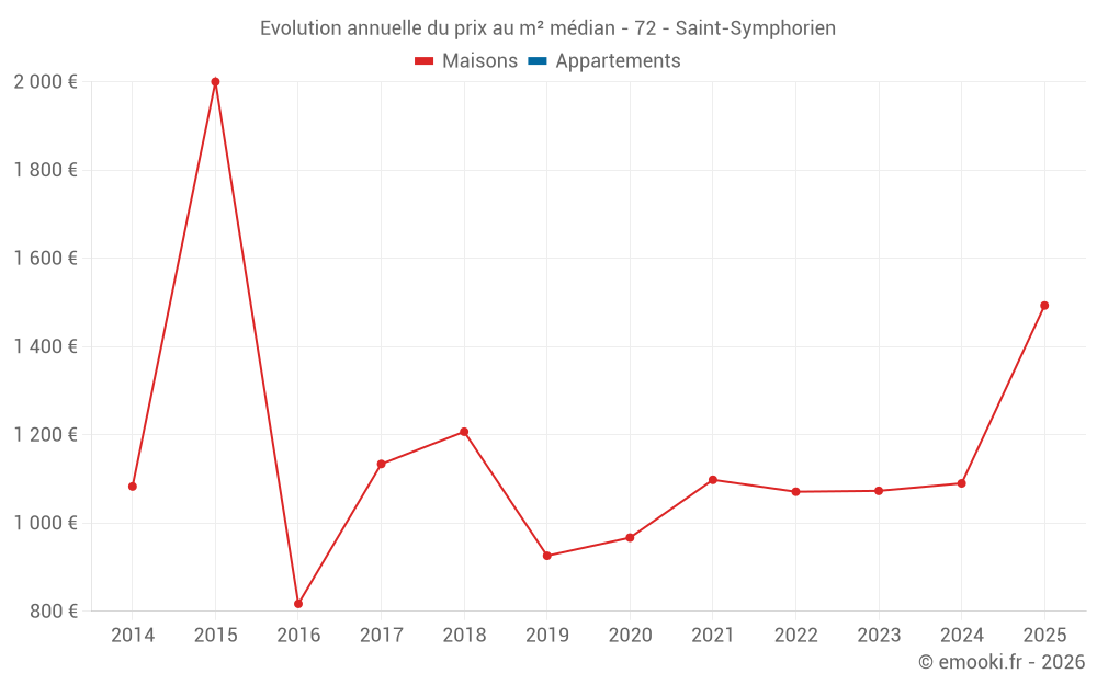Le prix médian sur les 16 transactions de maisons des 24 derniers mois dans la commune de Saint-Symphorien était de 1 140 € par mètre carré pour une valeur foncière médiane de 105 000 €. Sur cette période 60% des transactions se sont situées entre 632 et 1 460 € par mètre carré (du 2ème au 8ème déciles).