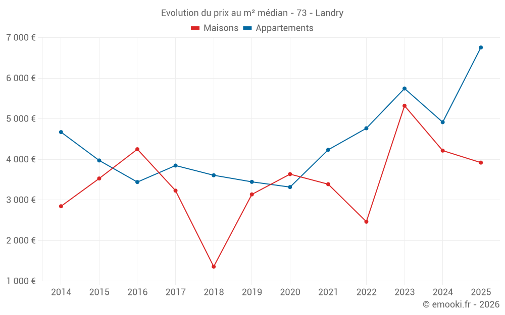 Carte des prix de l'immobilier dans la commune de Landry, choississez une section pour voir les transactions par parcelle.