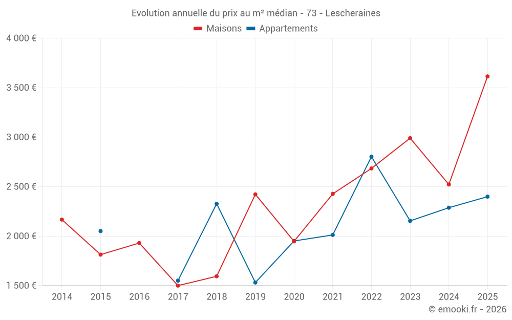 Carte des prix de l'immobilier dans la commune de Lescheraines, choississez une section pour voir les transactions par parcelle.