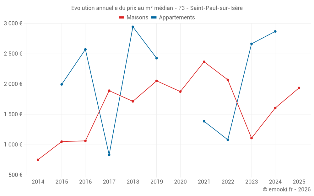 Le prix au m² des maisons a diminué de 18% depuis 4 ans, mais il a augmenté de 158% en 11 ans.